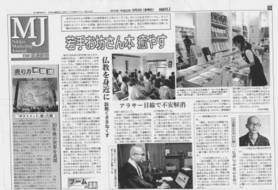 「日経MJ」(日経流通新聞)ウラ一面(16面)トップ記事に、 小池龍之介さん『考えない練習』と共にカラー記事で、 白川密成や『ボクは坊さん。』のことを紹介してくださっています。
